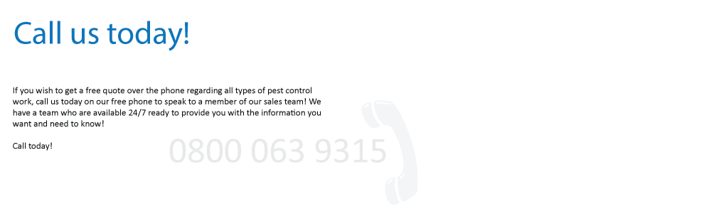 To ensure that your pests dont become uncontrollable call us today on our free phone at 0800 987 0903 today and speak to a member of our sales team. Our sales team are more than capable of quoting you a price over the phone dependant on your problem so you can be sure before you book in any work!